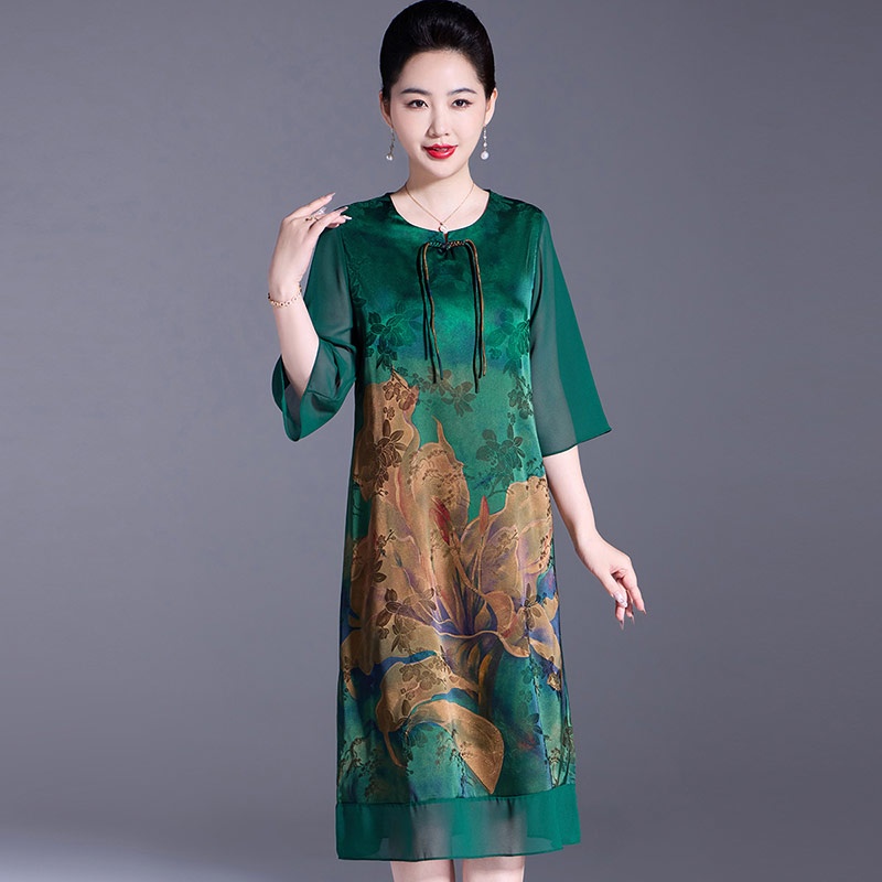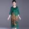 LuckyOzasec 92%真丝印花中式连衣裙8886-1 绿色 XL
