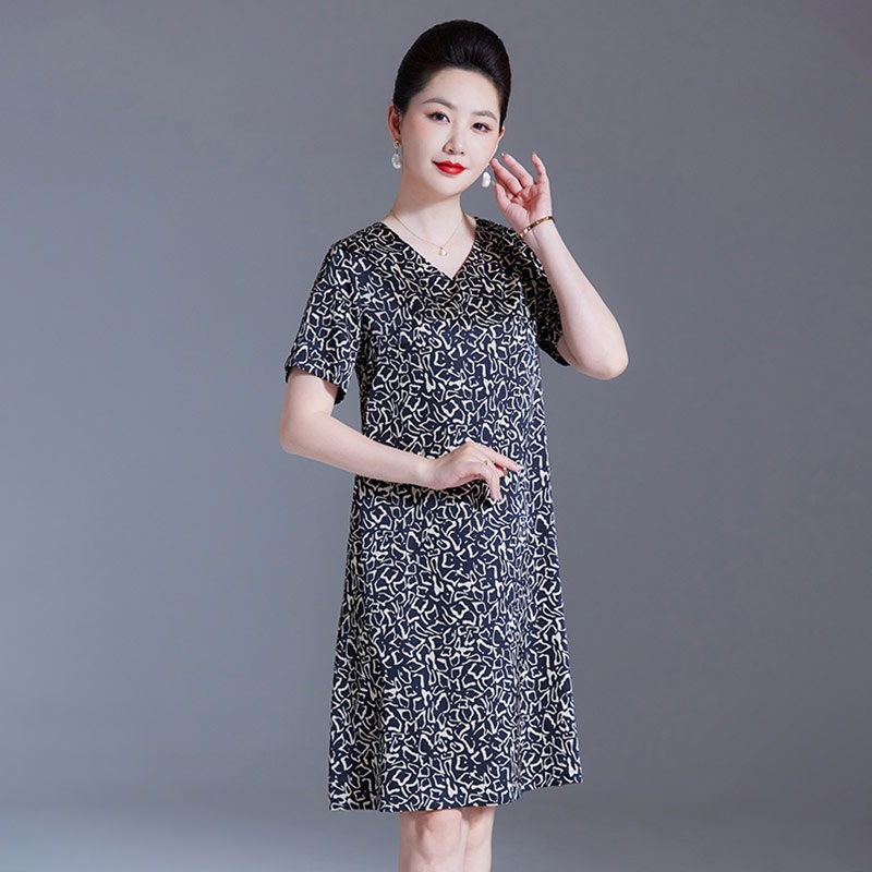 LuckyOzasec 92%真丝印花简约连衣裙AYS-2104 黑色 L