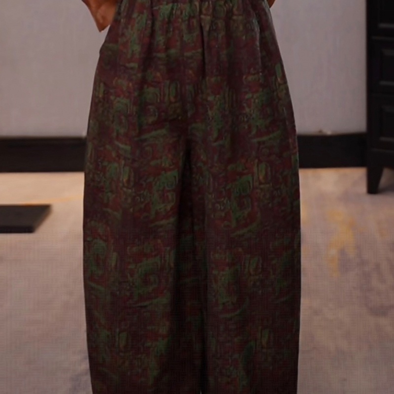 【100%桑蚕丝】千奈莉珍藏级60姆米油料红云纱阔腿裤 紫儃色 L