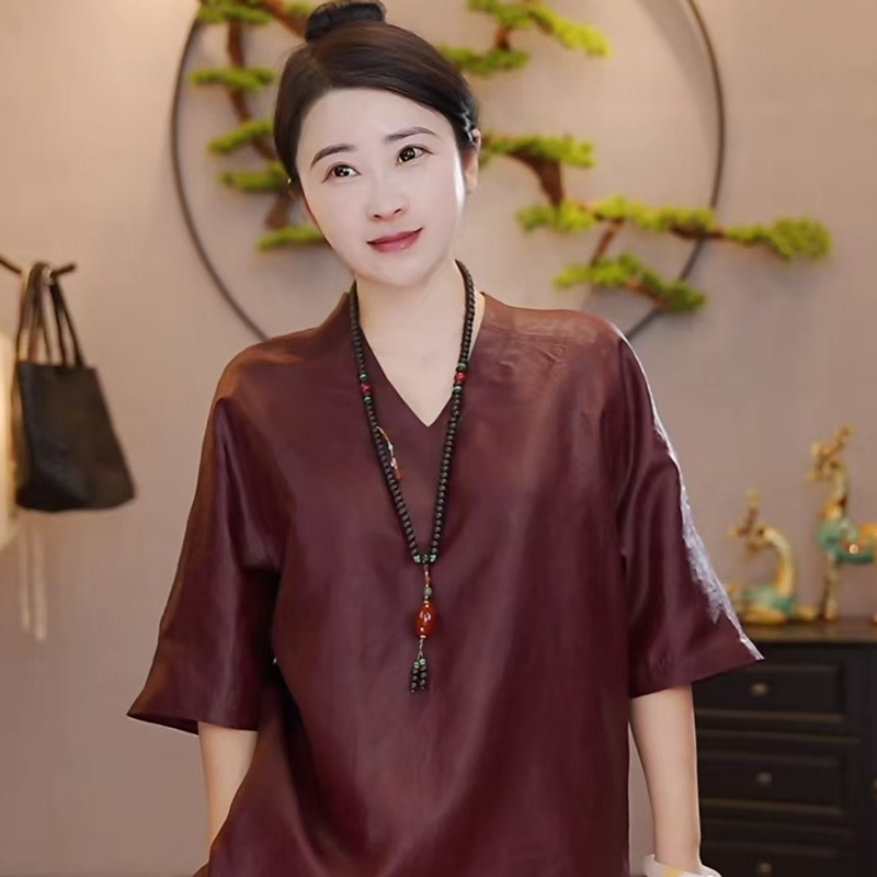 千奈莉锦油绸双面气质香云纱上衣外套YJ209 青铜仪 XL