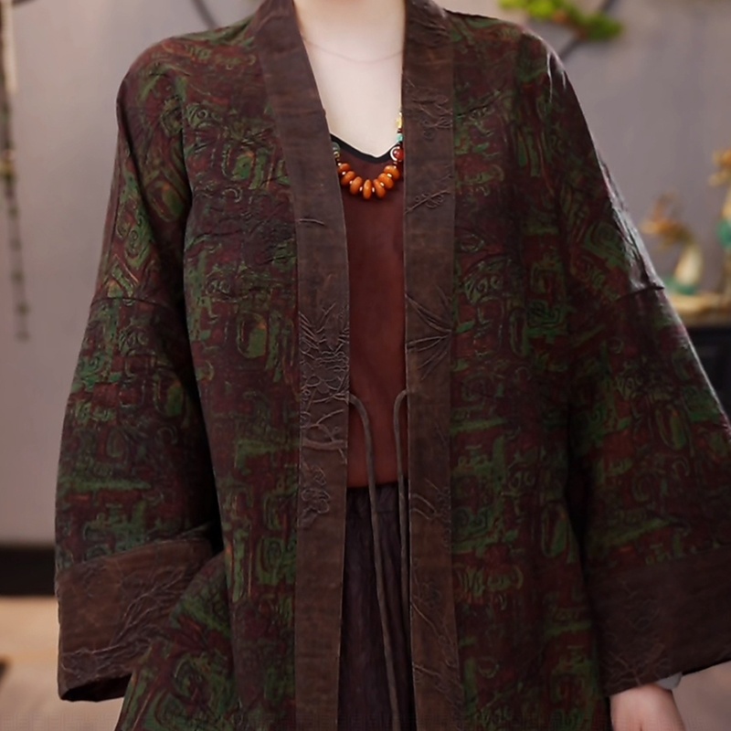 【100%桑蚕丝】千奈莉古董料蓝龟油料双面香云纱开衫 蓝色 L